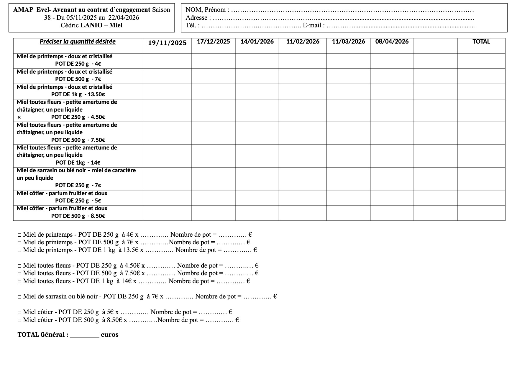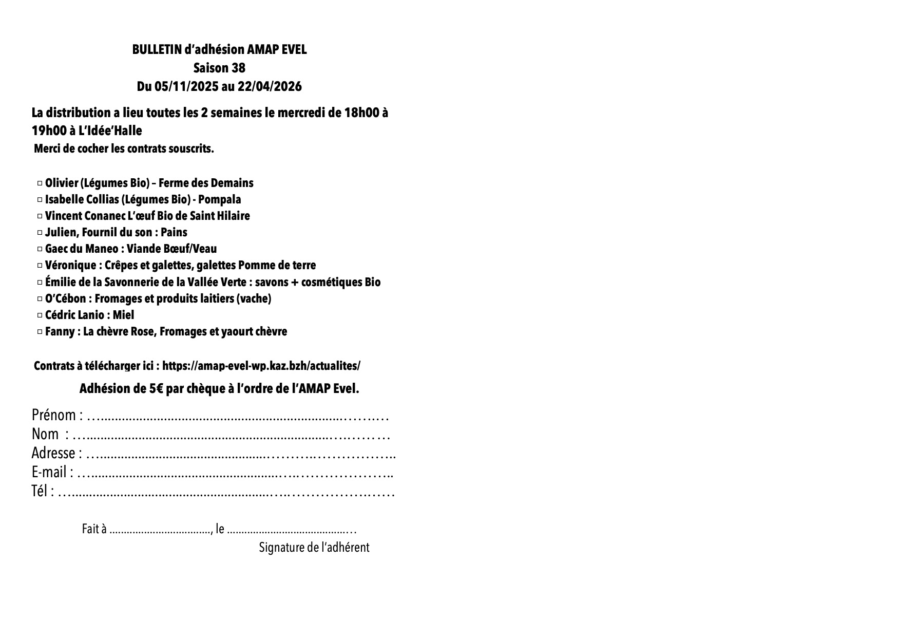 CONTRAT D’ADHÉSION À L’AMAP